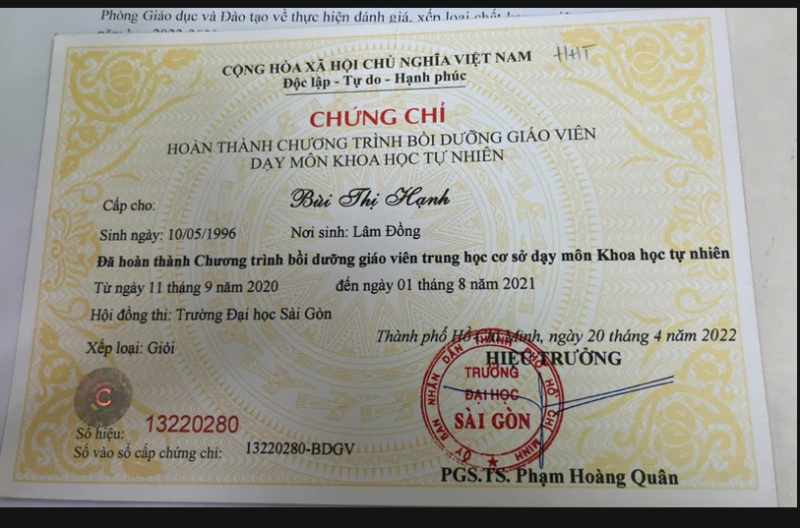 Có chứng chỉ nghiệp vụ sư phạm hệ đại học - cao đẳng loại giỏi (2014)